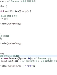 반응형 [ Developer ]/Core Java21 [Java] Scanner Class 자바 스캐너 클래스 Java - Scanner C언어에서의 scanf나 getch같은 함수와 같은 부류인 사용자에게 키보드로 값을 입력 받을 수 있는 기능을 할 수 있는 클래스이다. Scanner 클래스를 사용하기 위해선 코드의 프로젝트 윗 부분에 import 시켜줘야 한다. Import java.util.Scanner; 라는 구문을 추가하여 Main에서 사용을 하게끔 Scanner 클래스를 불러들이는 것이다. 변수를 추가할 때 int numberOne = 3; 이렇게 선언과 함께 초기화를 시킬 수 있고 int numberTwo;라고 선언 후 numberTwo = 5; 이런식으로 초기화가 가능하다. 또한 사용자에게 입력을 받기 위해서는 Scanner 변수를 추가해야 하는데 Scannner 변수명 = new Scanner(S.. 2016. 5. 6. [Java] Calendar Class 시간값 가져오기 시간값 컴퓨터는 1970년 1월 1일 0시 0분 0초 부터 1초의 시간값은 1000으로 인식 1분 = 1000 * 60 / 1시간 = 1000 * 60 * 60 #1 현재 시간 가져오는 프로그램 컴퓨터의 시간은 1초에 1000값씩 증가한 값을 통해 시간값을 보인다 그래서 Date 클래스를 통해서 우리나라의 시간을 출력할 수 있다 #2 시간 출력 메소드 LocaleString을 통해서 우리나라의 현재 시간과 날짜값을 가져올 수 있다 GMT는 표준시간으로 우리나라와의 시간차이를 볼 수 있다 하지만 실무에 나가서는 Locale을 쓴다면 서버가 있는 해외의 시간을 가져오게 된다 시간의 경과를 나타내기 위해서는 System.currentTimeMillis();를 많이 사용하게 된다 또한 캘린더를 통해서 시간과 날.. 2016. 3. 17. [Java] 정규 표현식 정규 표현식 정규표현식의 의미 응용 방법 2016. 2. 22. [Java] 예외 처리 (try ~ catch) 예외 처리 (try ~ catch) 예외란 프로그램상의 에러가 발생했을 때 예외가 발생한다. ex) nextInt() 메소드는 숫자만을 입력 받는 기능을 하는데 여기에 문자를 입력한다면 예외(에러)가 발생 예외가 발생할 때 적절한 처리를 해주지 않으면 프로그램이 종료되어버리기 때문에 예외는 상황별로 다른 예외를 발생시켜야 한다. 예외는 "던져진다"라고 표현한다. 예외 처리는 try ~ catch 라는 키워드를 사용한다. 예외를 우리가 생성할 수도 있다. 예외는 밑에서부터 위로 발생한다. # 예외 발생 맨 밑줄에서부터 위로 실행을 시켜서 올라가기 때문에 InputMissmatchExceptionTest.java의 27번째 라인에서 발생이 된다고 하면 된다. InputMismatchException이란 에러.. 2016. 2. 22. 이전 1 2 3 4 5 6 다음 반응형