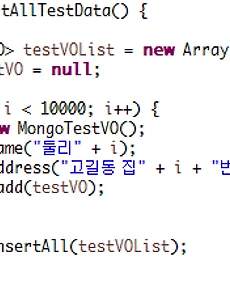 반응형 Java115 [MongoDB] 몽고디비 스프링 Insert All Spring-Data-MongoDB Insert All Insert를 여러번 해주고 싶을 대 Insert All을 이용한다 insertAllTestData 메소드를 생성한다 List를 생성하고 for문을 통해서 데이터를 넣고 insertAll을 통해서 List를 보내면 된다 그리고 나서 Main에서 메소드를 실행시켜 준다 그러면 Robomongo에서 잘 들어간 것을 볼 수 있다 Oracle에 비해서 간단한 것을 알 수 있다 2016. 7. 2. [Spring] 스프링 기반 간단한 게시판 Spring 간단한 게시판 # 패키지 구조 기존 방식 WEB -> Biz -> DAO 바뀐 방식 WEB -> Service -> Biz -> DAO Transaction 처리를 위해서 Service를 추가한 것 WEB Controller Session 필요 시 생성 후 Service로 넘김 단순하게 URL Mapping을 통해 서비스 호출 기능 Service Interface, Class 작성 Transaction 처리 Controller의 업무를 받아서 처리 여러 개의 Biz를 가짐 우선 DB를 생성하기 위해서 Toad for Oracle에서 System 계정으로 로그인한다 Schema Browser에서 Users에서 계정을 추가한다 SPRING / spring로 계정을 생성한다 그런 후 Tablesp.. 2016. 6. 30. [MongoDB] 몽고디비 스프링 연동해 Insert 하기 Spring-Data-MongoDB 이용해 Insert 해보기 Spring에서 MongoDB를 이용해본다 이전에 생성했던 MongoTest.java에 추가를 해준다 클래스를 따로 생성하지 않으려고 Main Class 안에 객체 클래스를 선언해준다 MongoDB를 이용할 때 @Id 어노테이션이 꼭 붙어야 한다 그리고 VO를 이용해서 넣을 값을 set 시키고 실행 한다 그런 후 Run as -> Java Application으로 실행을 하고 결과를 본다 그런 후 Robomongo를 확인하면 값이 들어간 것을 볼 수 있다 이전에 MongoDB만을 이용할 때와는 다르게 _class로 값이 들어간 것을 볼 수 있다 계속 실행을 해도 문제없이 값이 들어가는 것을 볼 수 있다 why? -> 중복이 되지 않기 때문 *.. 2016. 6. 30. [MongoDB] 몽고디비와 스프링 연동 Spring framework Spring-Data-MongoDB 연동 설정 MongoDB를 Spring과 연동시키는 방법에 대해 알아본다 Spring Tool Suite를 이용하며 Dynamic Web Project를 생성해서 진행한다 @ Dependency 추가 우선 pom.xml에서 필요한 Dependencies를 추가해준다 *Dependency Source 1 2 3 4 5 6 7 8 9 10 11 12 13 14 15 16 17 18 19 20 21 22 23 24 25 26 27 28 org.mongodb mongo-java-driver 3.2.2 org.springframework.data spring-data-mongodb 1.9.1.RELEASE org.springframework spring-webmvc 4.2.6... 2016. 6. 29. 이전 1 ··· 12 13 14 15 16 17 18 ··· 29 다음 반응형